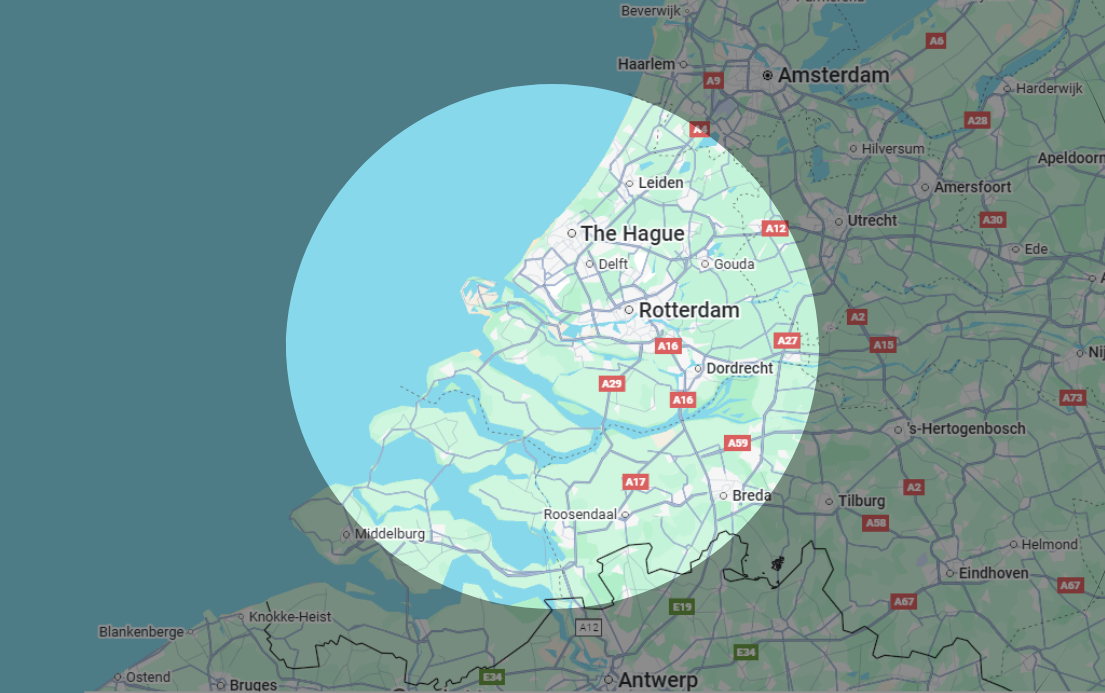 Valt uw locatie daarbuiten? Geen probleem! We leveren ook daar, met een kleine vergoeding van €0,22 per extra kilometer.